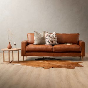 The ginger‑toned leather adds warmth, while its clean lines make it a versatile choice. Pair it with a solid wood coffee table or side table to echo the natural theme, then layer it with a textured rug in neutral tones so the leather isn’t floating in space. - Hamlet 3‑Seater Leather Couch – Butterscotch