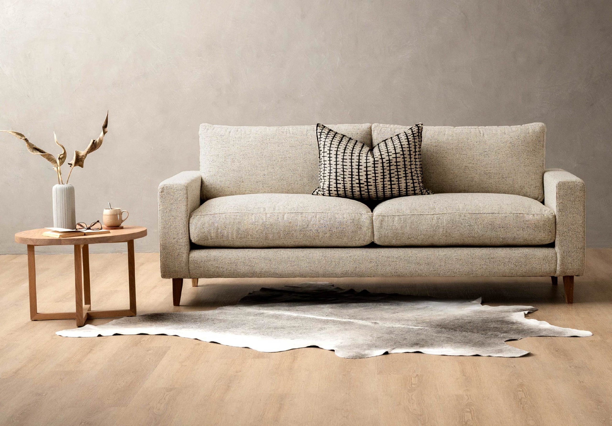 - Then layer in soft textiles like rugs, throws, and cushions. Start with the larger items, then add the smaller ones for the standout details.